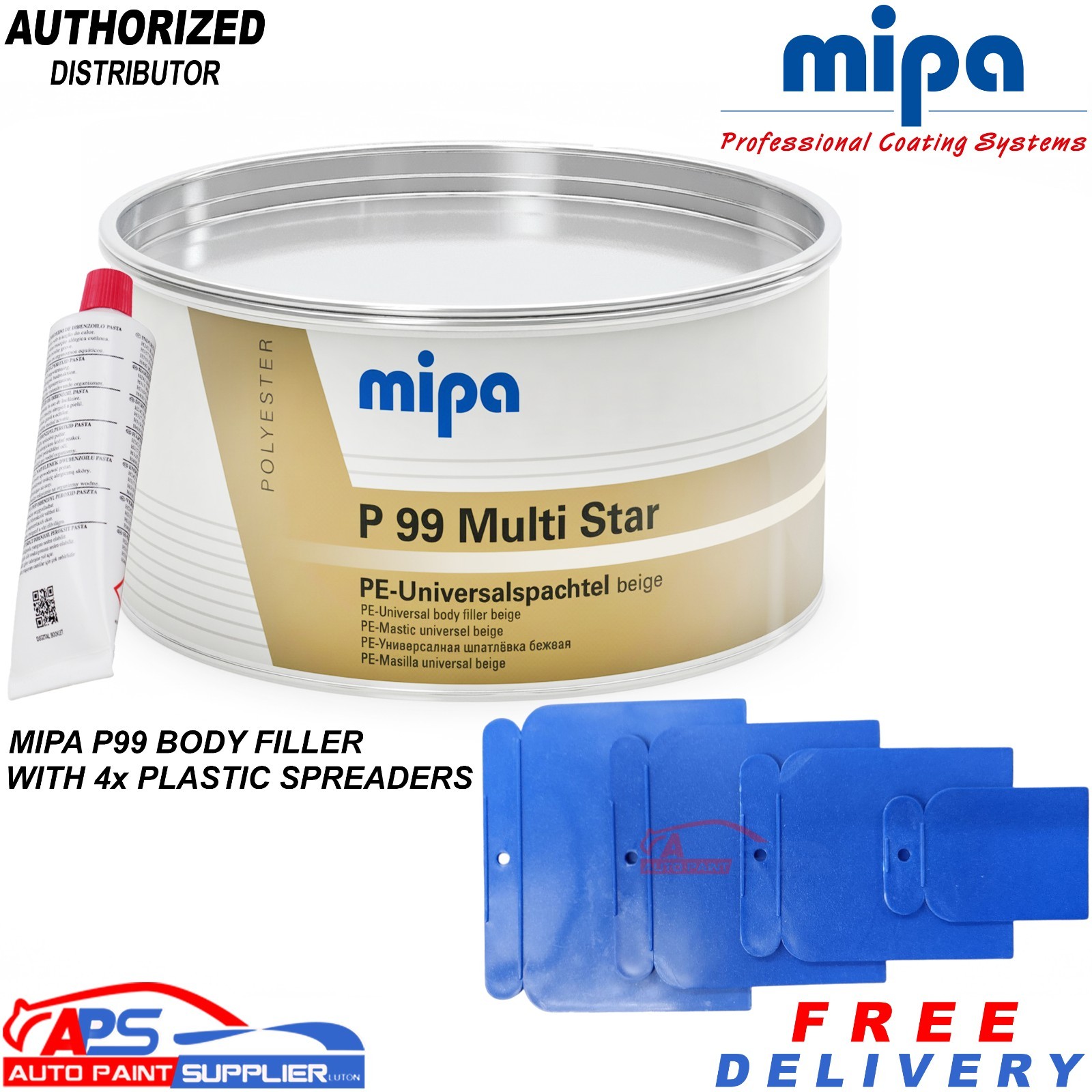MIPA P99 Body Filler 2kg Kit Beige + Hardener & 4 Plastic SpreadersMipa P 99 Multi-Star is a fil.....